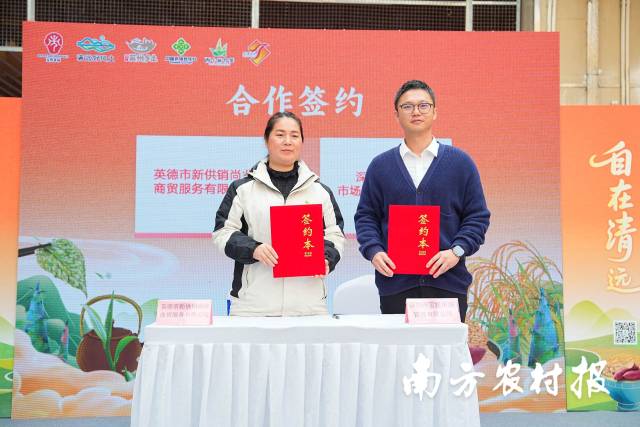 这一愿景在现场也得到了实质性推进——活动中,“英德特色农产品深圳·宝投市场销售点”正式揭牌设立,推动双方合作向常态化、机制化迈进。与此同时,深圳市宝投市场管理有限公司与英德市新供销尚业商贸服务有限公司现场签订产销合作协议,为英德农特产品稳定进驻深圳、长效拓展湾区市场奠定了坚实的渠道与机制基础。
