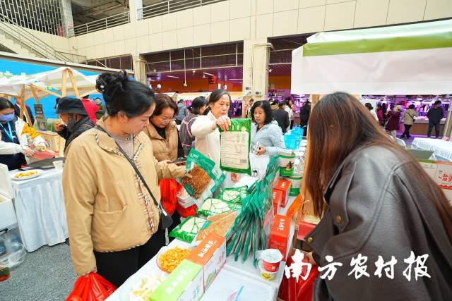 参展企业热情洋溢,在产品展示的同时,也为游客带来了品鉴体验。沸水倾注,英德红茶花香蜜韵高锐持久,众多茶客驻足细品。“这茶香很浓,入口顺滑,回甘持久,我很喜欢这个口感味道。”市民陈女士在品尝后赞不绝口,当即决定购买一些用于新年招待客人。另一边,西牛麻竹笋试吃摊位前也排起了小队,爽脆的泡椒、红油即食笋片获得了消费者的青睐。展销刚刚半天时间,不少企业的货就近售罄。
