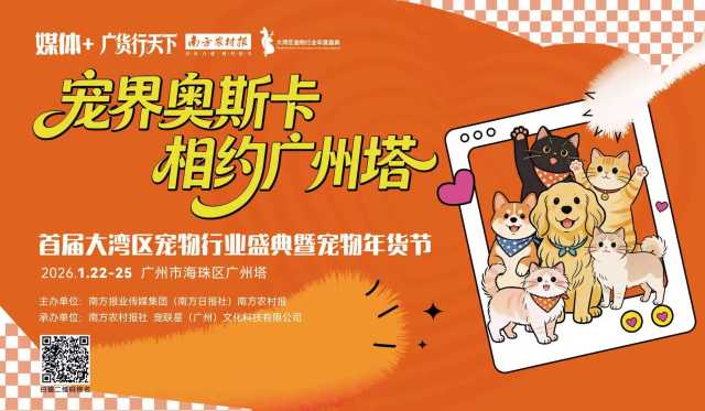 1月22日,“媒体+”广货行天下·首届大湾区宠物行业年度盛典暨宠物年货节将在广州塔盛大启幕。这里既是行业品牌、前沿技术的展示秀场,也是资源对接、消费互动的核心平台;既是对大湾区宠物产业发展成果的辉煌巡礼,更是“广货行天下”在“它经济”赛道的全新起点。